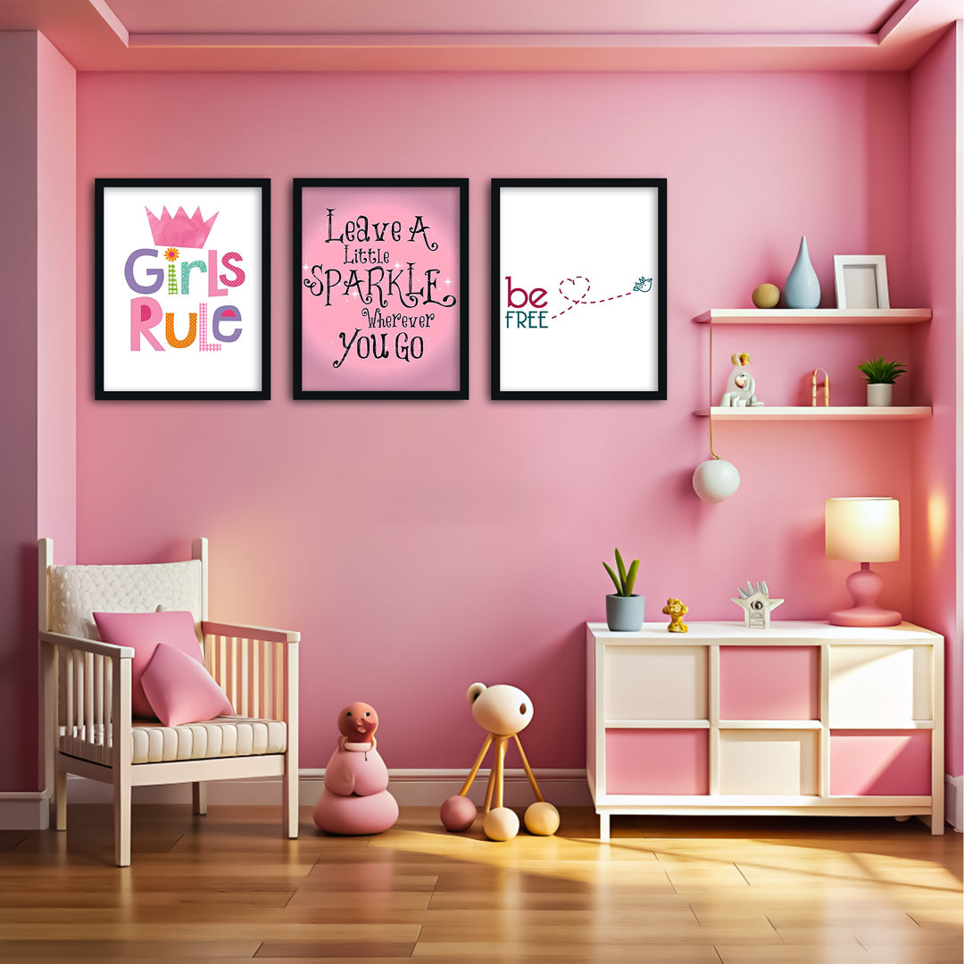 Be Free Unicorn Theme Kids Wall Art-3 Panel (1)