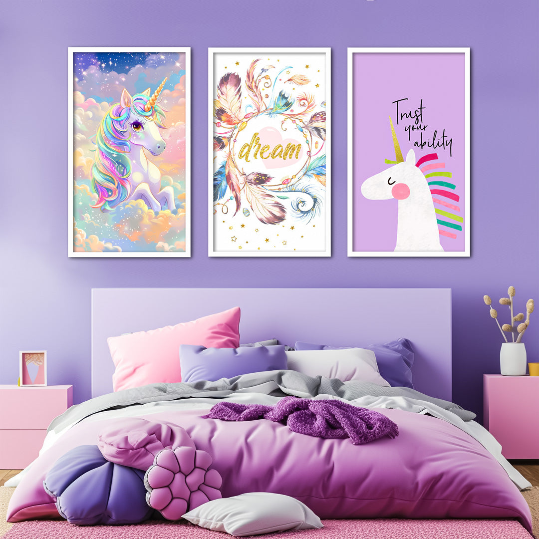 Trust Your Ability Unicorn Theme Kids Wall Art-3 Panel (1)
