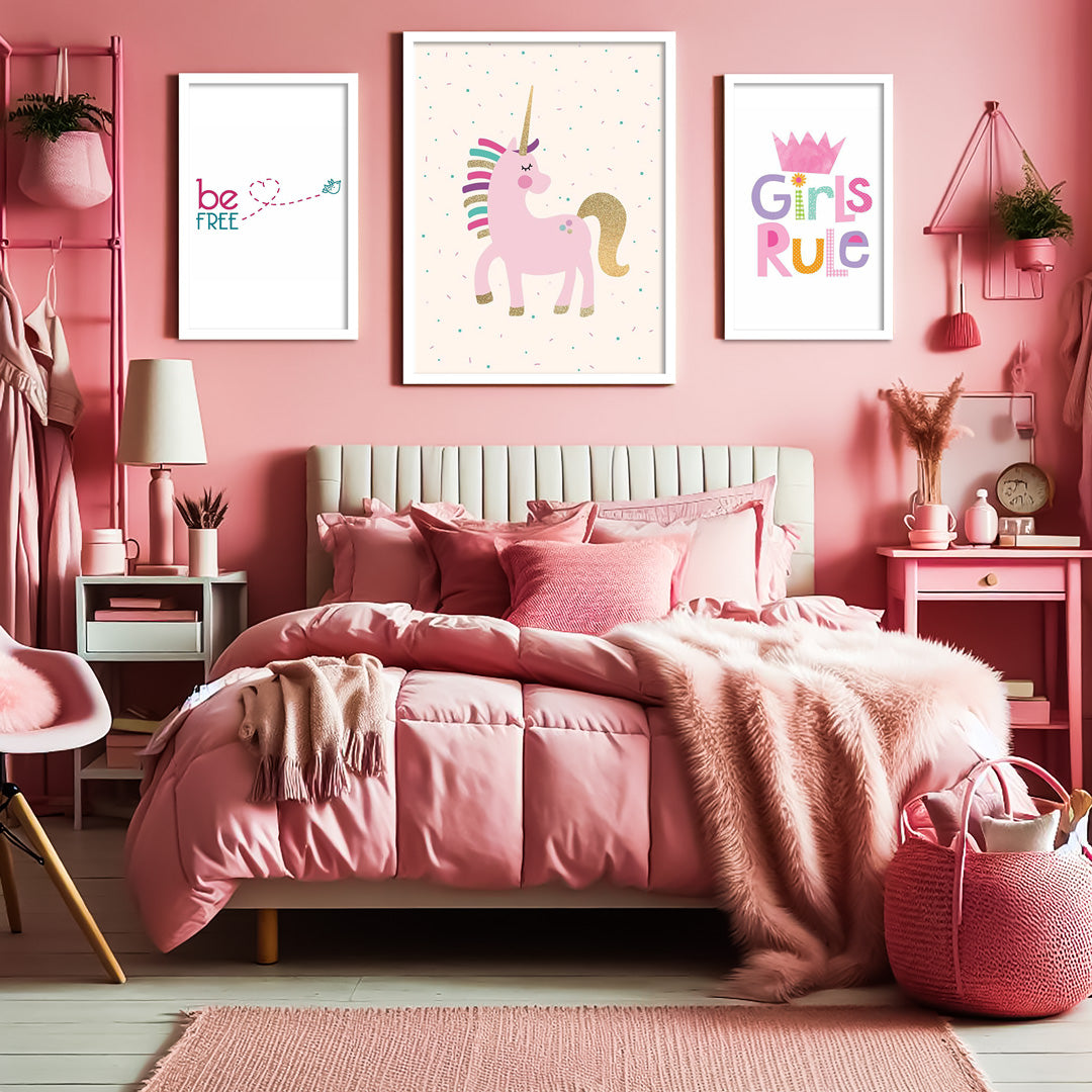 Girls Rule Unicorn Theme Kids Wall Art-3 Panel (1)