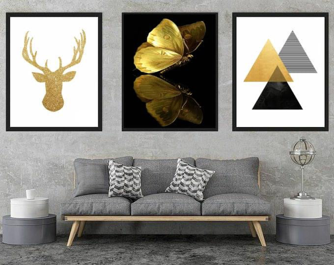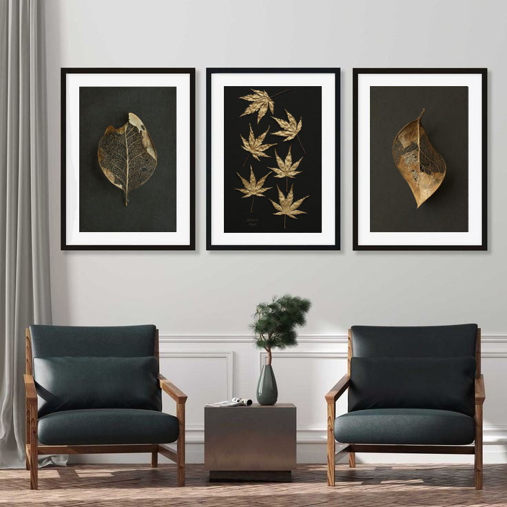 Golden Dry Leaves Modern Wall Art-3 Panel