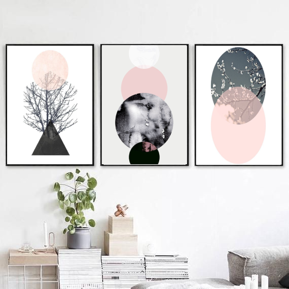 Nordic Modern Pink & Grey Minimal Wall Art-3 Panel