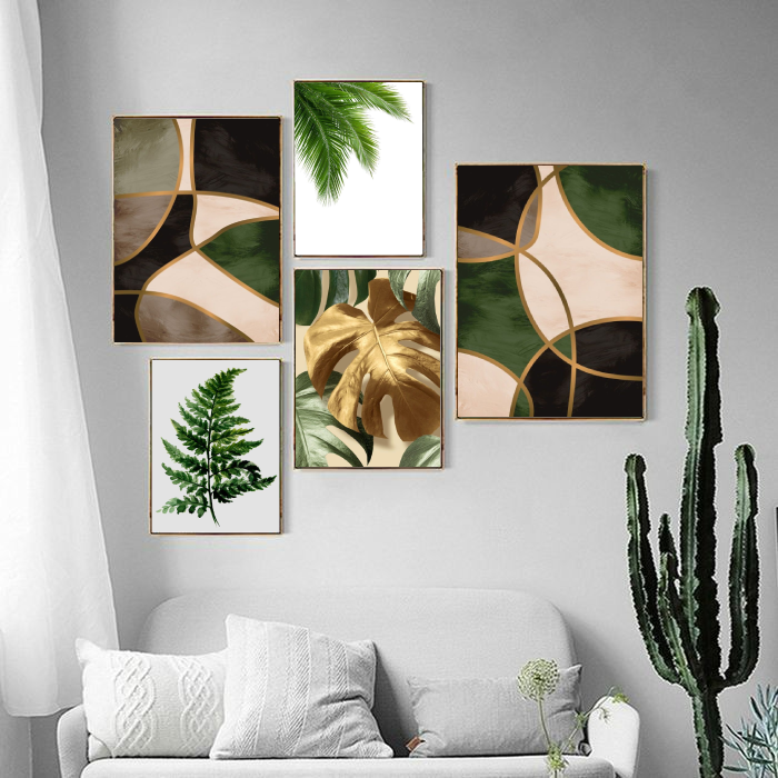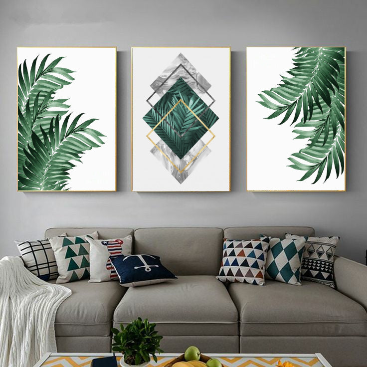 Green Tropical Geometric Nature Wall Art-3 Panel