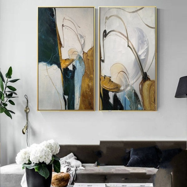 Gilded Serenity Abstract Wall Art-2 Pannel