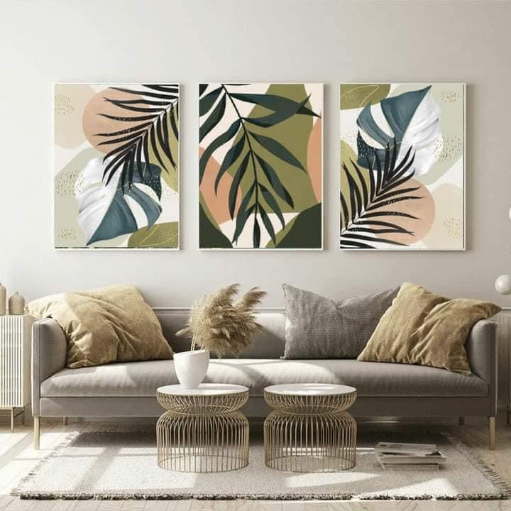 Green Boho Wall Art-3 Pannel
