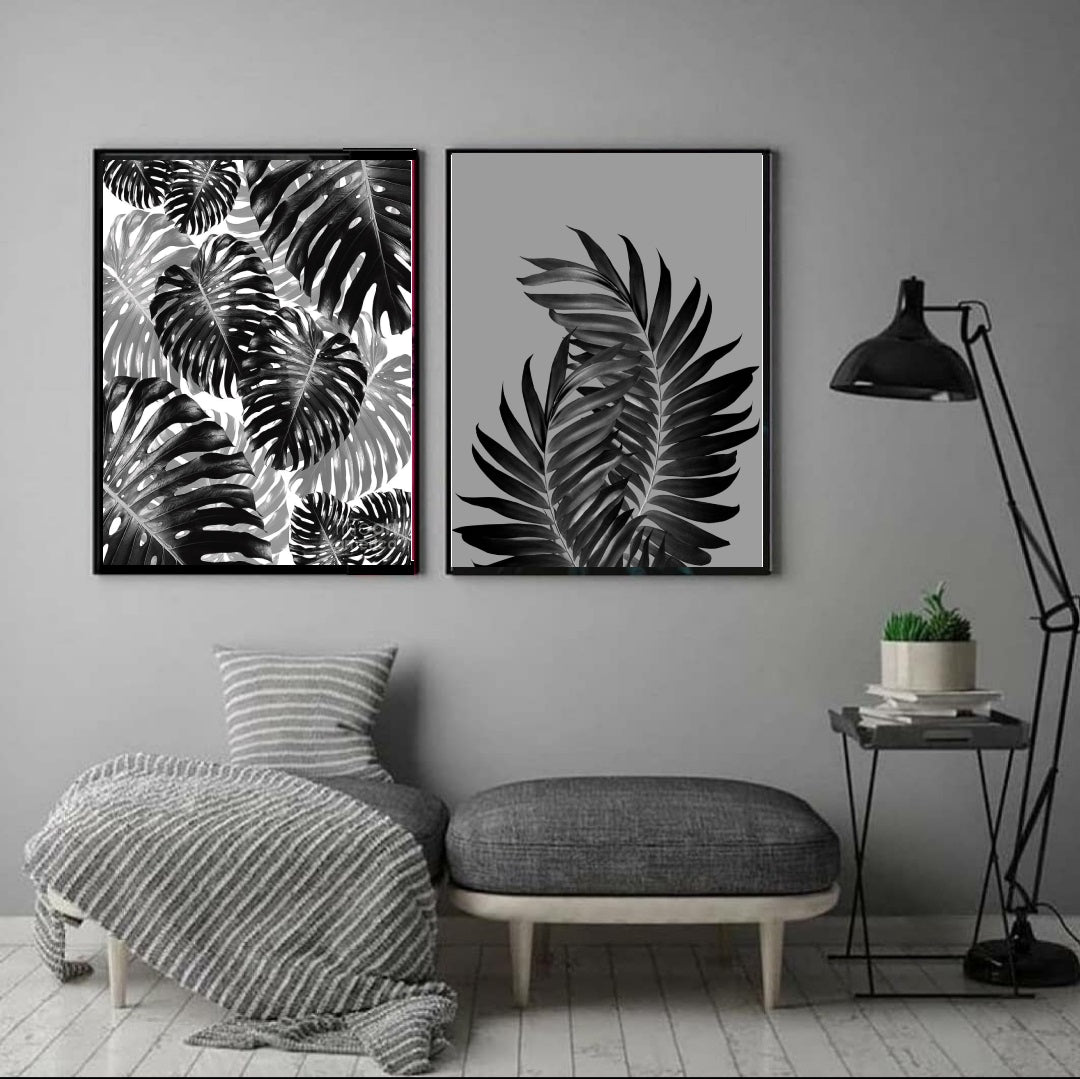 Black Bloom Monstera Wall Art-2 panel