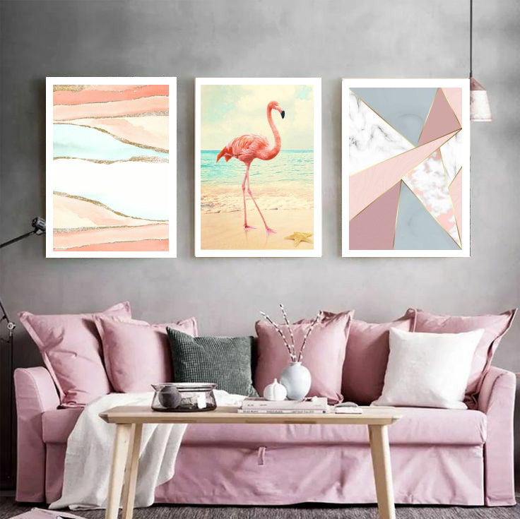 Pink Shimmer Modern Minimal Wall Art-3 Panel