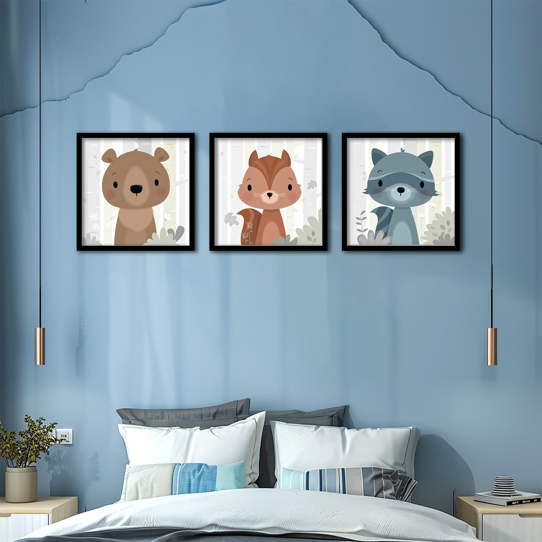 Woodland Animal Kids Wall Art-3 Panel (3)