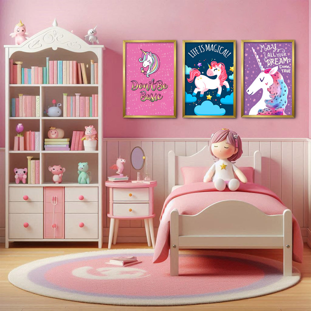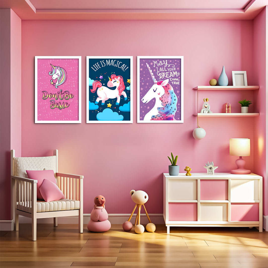 Don't Be Basic Unicorn Theme Kids Wall Art-3 Panel (1)