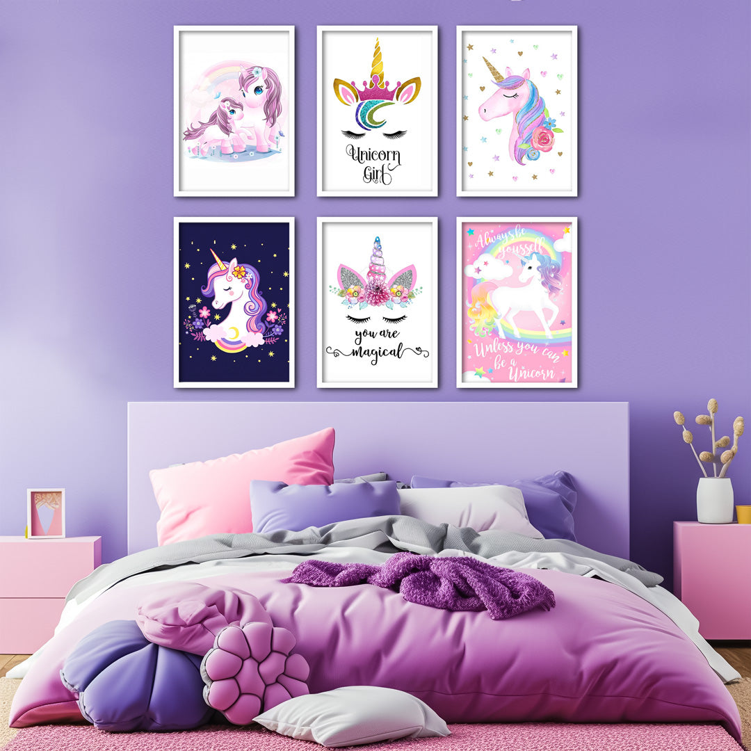 Unicorn Girl Kids Wall Art-6 Panel (1)